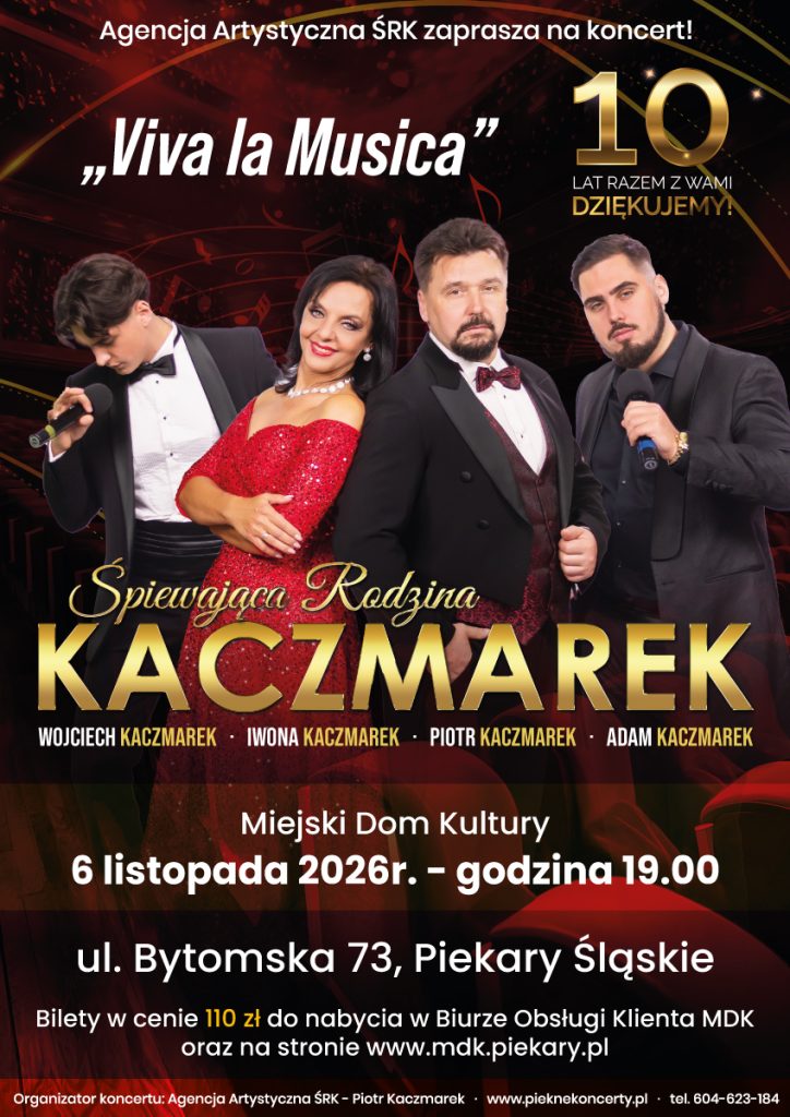 10 lat z Wami – Nowa Trasa Koncertowa Śpiewającej Rodziny Kaczmarek. Dziesięć lat wspólnego muzykowania. Dziesięć lat pełnych emocji, spotkań i wzruszeń.